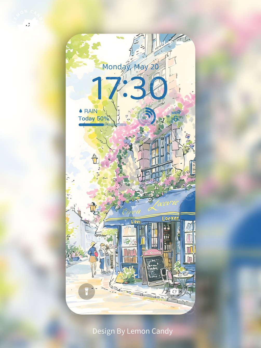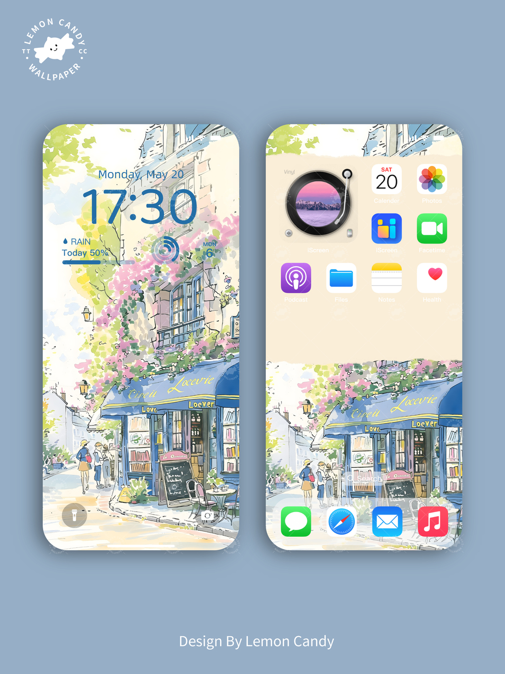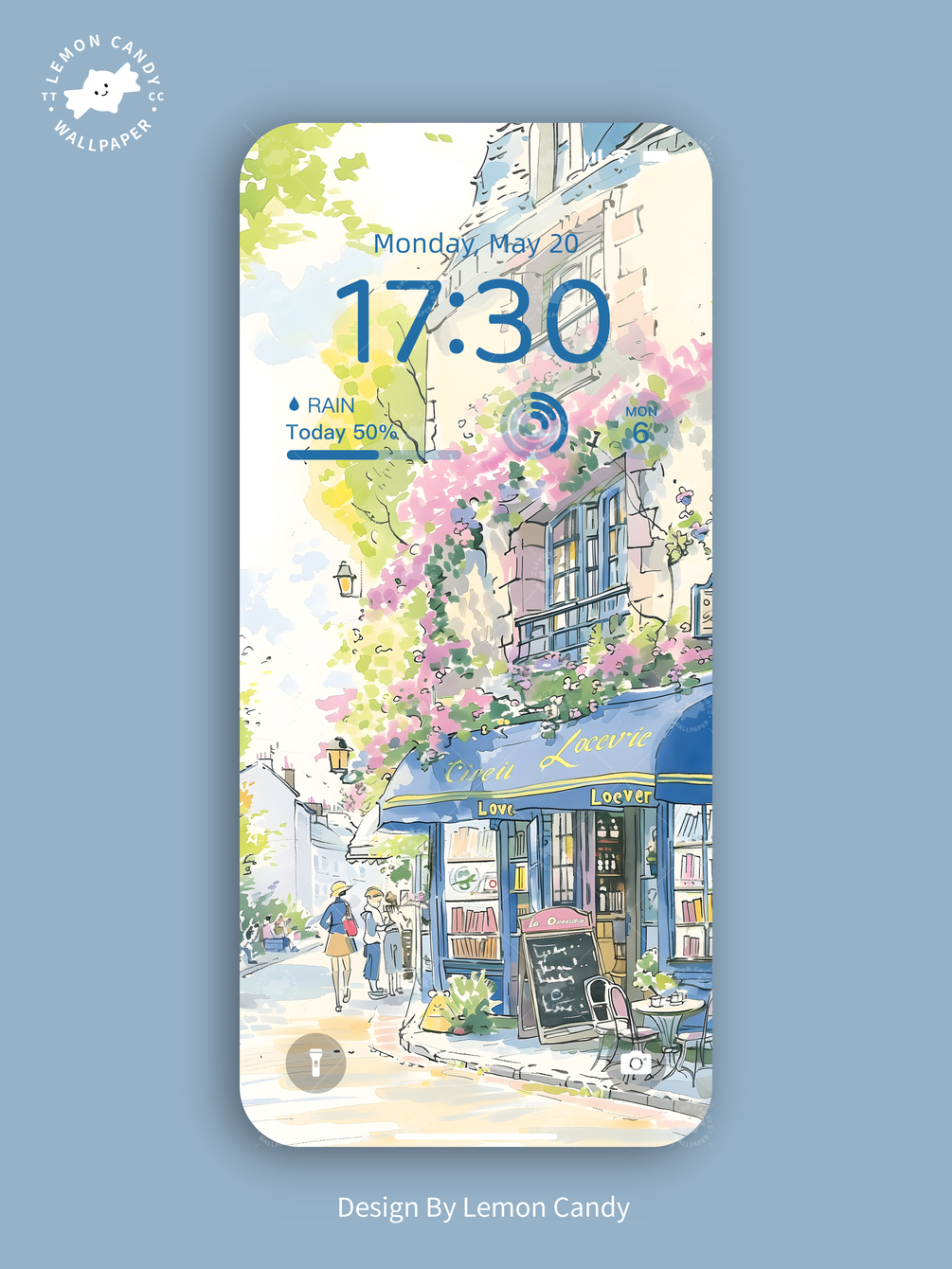 Shop Series | The Blue Bookstore Around the Corner #06 ,Shop Phone Wallpapers,spring shop,Bookstore Under the Green Trees, Watercolor Wallpaper iPhone, Minimalist Smartphone Wallpaper Set, iPhone Aesthetic Background